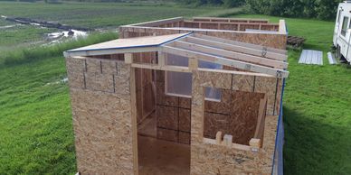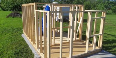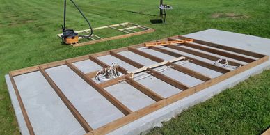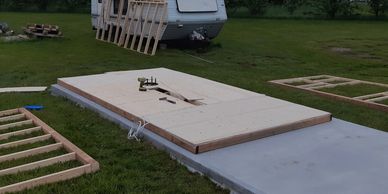 Held off on building the floor to use the cement pad as a flat work area to build the walls...turned out to be a wise decision