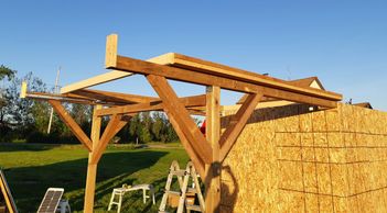 Detail of the frame work of the warm room...2" X 3" beams to save headroom
